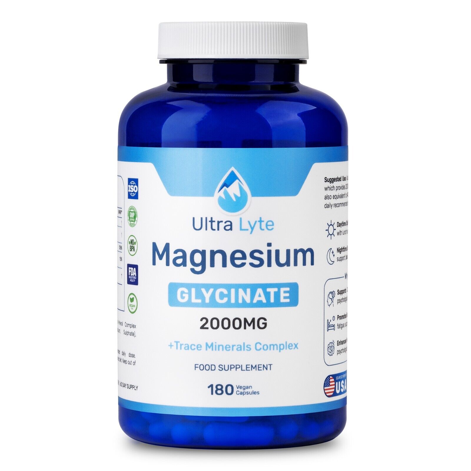 Ultra Lyte Magnesium 2000mg Glycinate 180 Vegan Capsules + Trace Minerals
