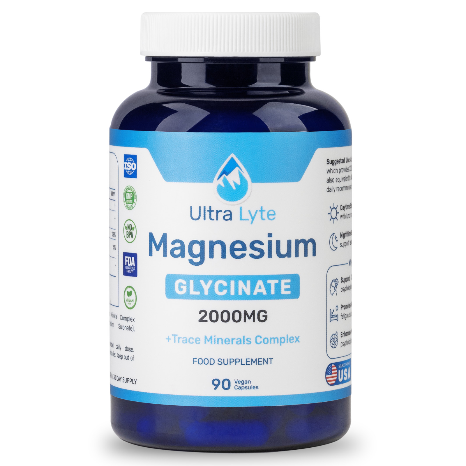 Ultra Lyte Magnesium 2000mg Glycinate 90 Vegan Capsules + Trace Minerals