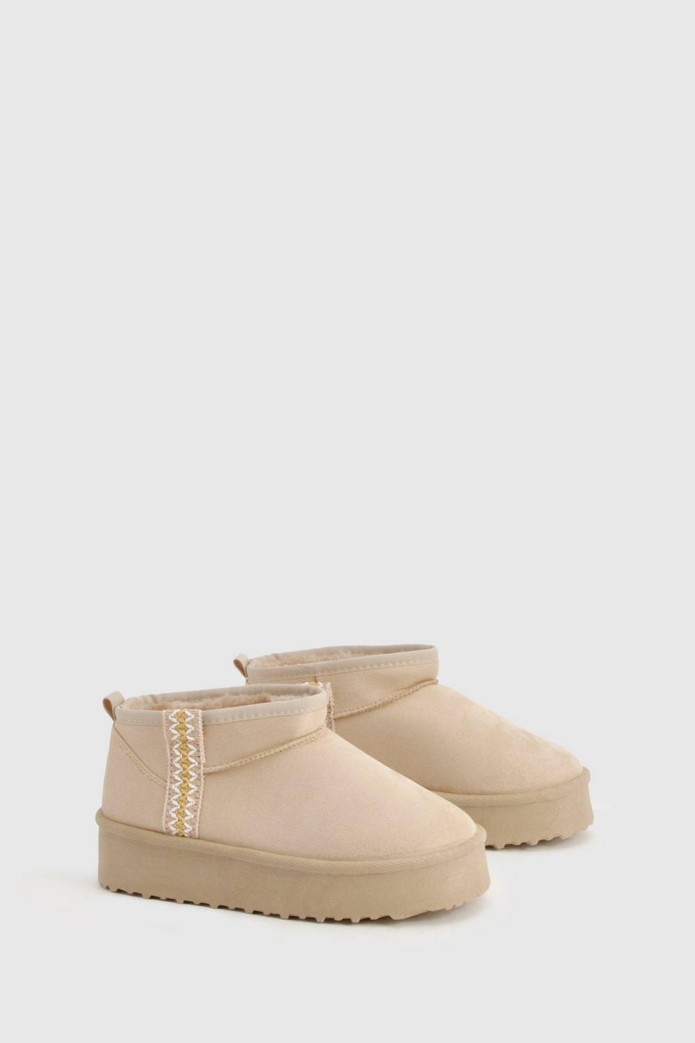 Womens Ultra Mini Embroidered Platform Cosy Boots - Beige - 7, Beige
