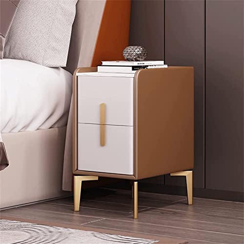 Bedside Table Wood, Nightstand For Bedroom Modern Simplicity, Mini Bedside Cabinet Drawer, Light Luxury Ultra-narrow Leather Bedside Cabinet(Orange Brown+White)