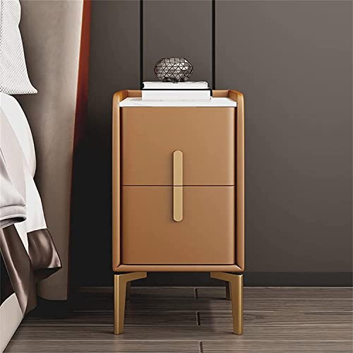 Bedside Table Wood, Nightstand For Bedroom Modern Simplicity, Mini Bedside Cabinet Drawer, Light Luxury Ultra-narrow Leather Bedside Cabinet(Orange Brown)