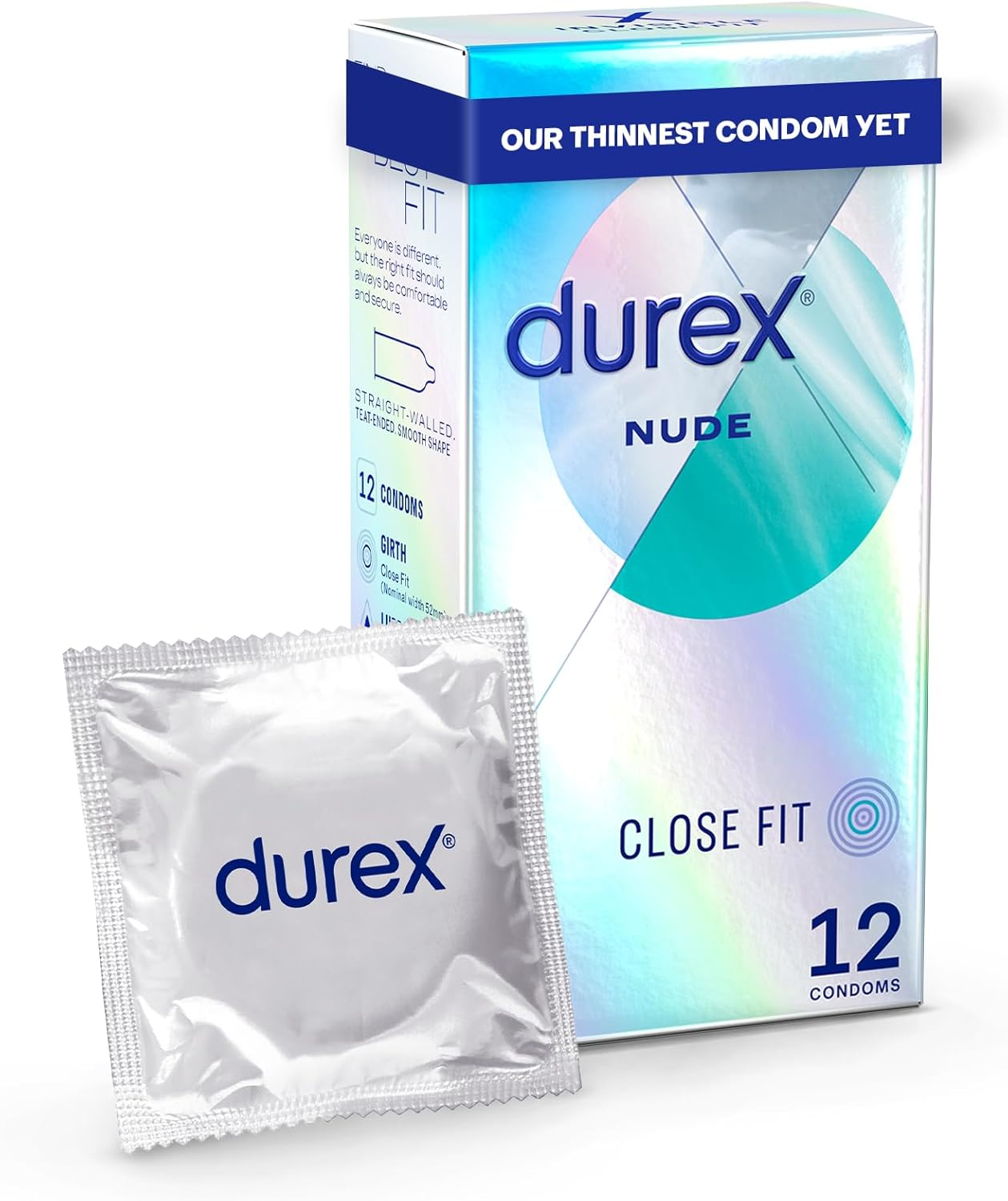 Durex Nude, Ultra Thin, 12 Condoms, Close Fit, with Silicone Lube, Easy on Shap