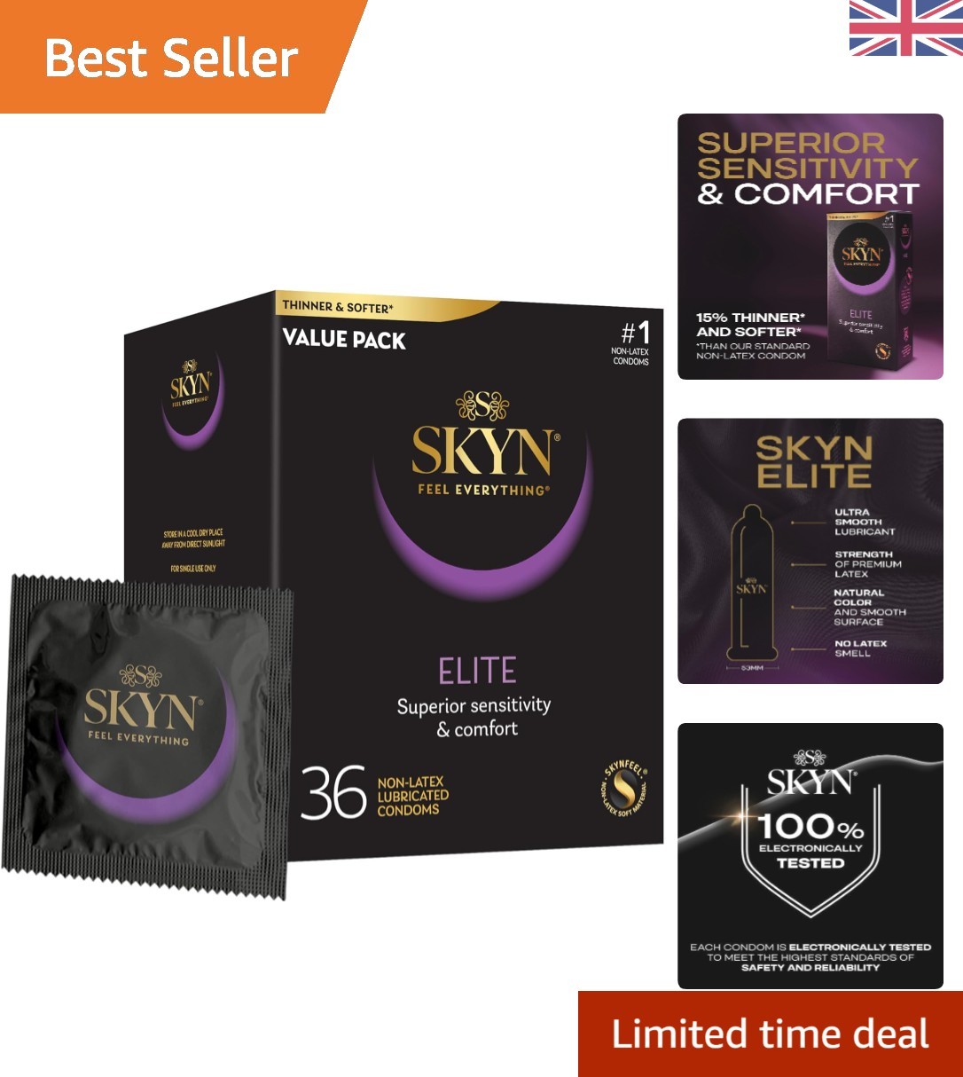 36 Count Elite Ultra-Thin Condoms - Polyisoprene, Latex-Free, Superior Comfort