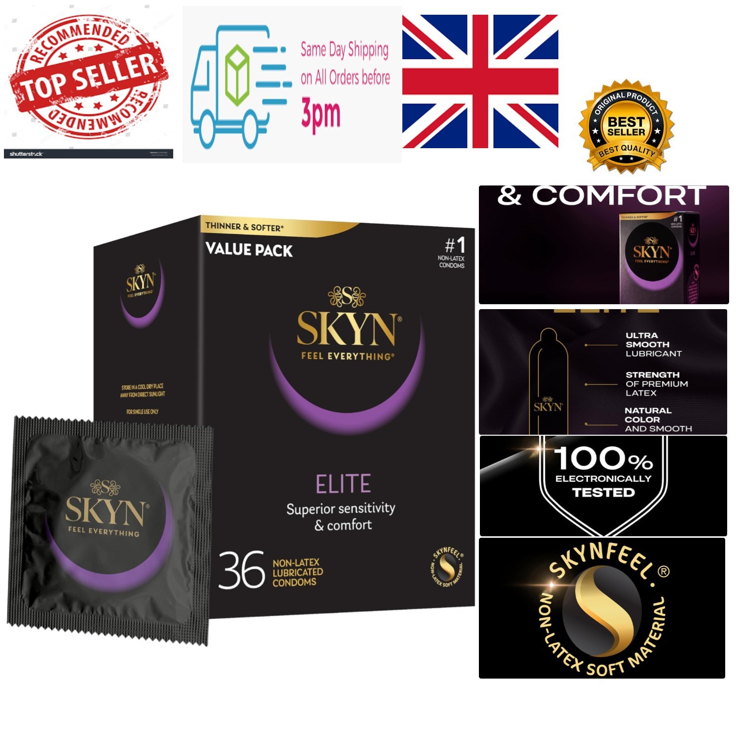 SKYN Elite (Pack of 24): Ultra-Thin Latex Free Condoms for Men, Regular Size Condoms, SKYNFEEL Technology, Smooth Surface, Lubricated, 53mm Nominal Width