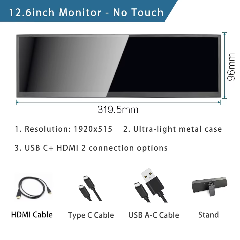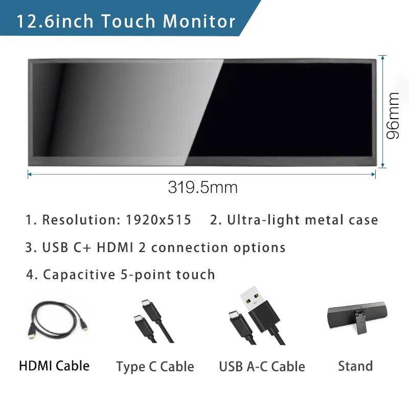 Ultra Widescreen Long Touch Monitor 8.8 12.6 Inch IPS 1920X480 Bar Stretched LCD