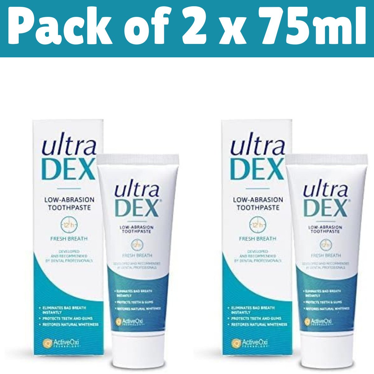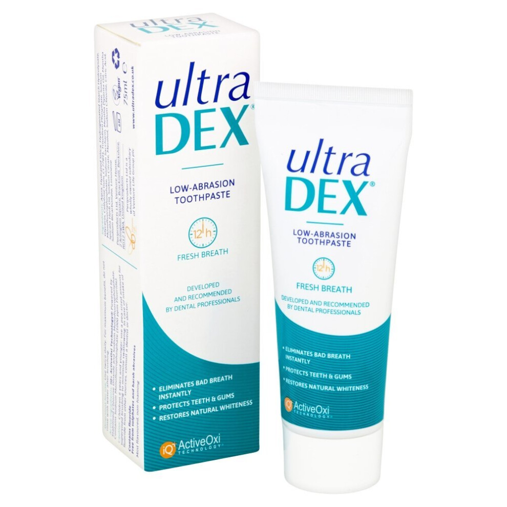 UltraDEX Low-Abrasion Toothpaste 75ml, 12-Hour Fresh Breath & Teeth Whitening UK