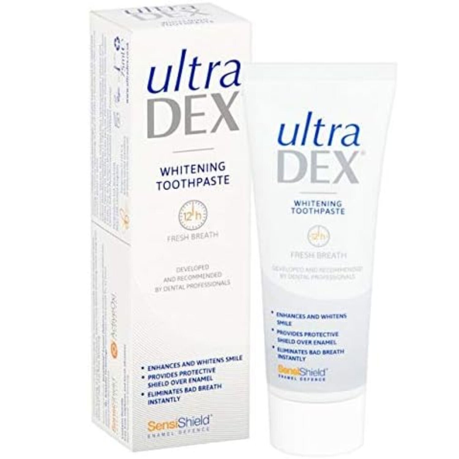Ultradex UltraDEX Whitening Toothpaste + Enamel Defense, Clinically Proven 12hr Bad Breath Treatment, For Sensitive Teeth, with Fluoride, Mint 6 X 75
