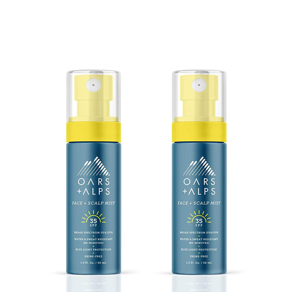 Oars + Alps Face and Scalp Mist SPF 35 Sunscreen Protects from Blue Light Summer Splash Scent Water and Sweat Resistant 1.5 Fl Oz 2 Pack