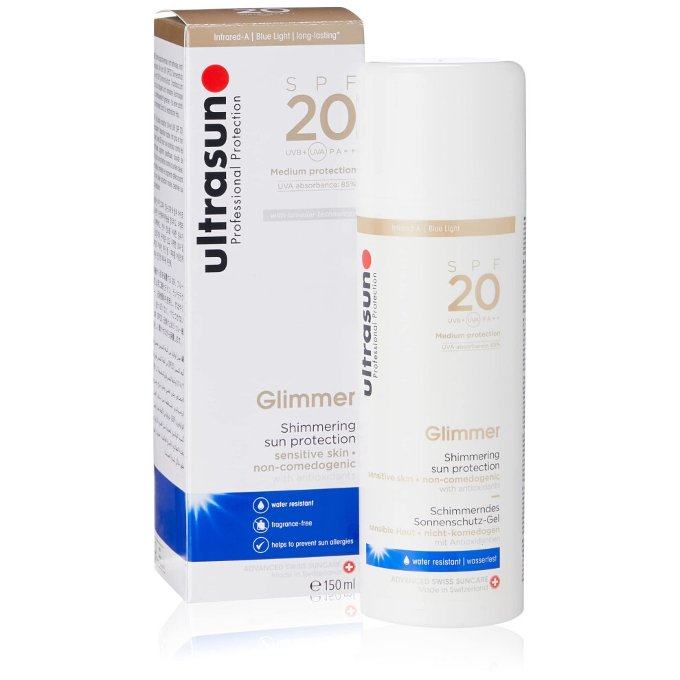 Ultrasun Glimmer SPF20 | Shimmering Sun Protection Gel Sensitive Skin | 150 ml