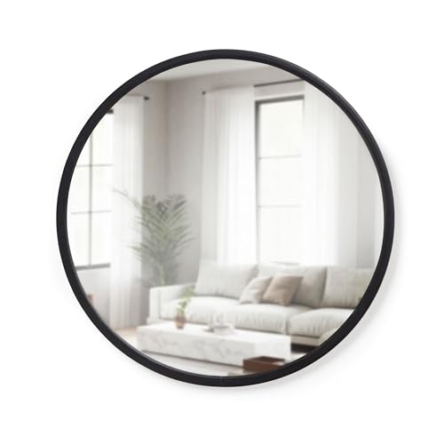 Umbra Hub Round Wall Mirror with Rubber Frame Modern Style for Bathroom Entryway Living Room and More 24-Inch Black