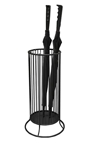 TONZN Umbrella Stand, Drain Tray Umbrella Stand with Hook and drip Stand Stand with Walking Stick 7.87x19.69in Round Stand Holder Black Storage
