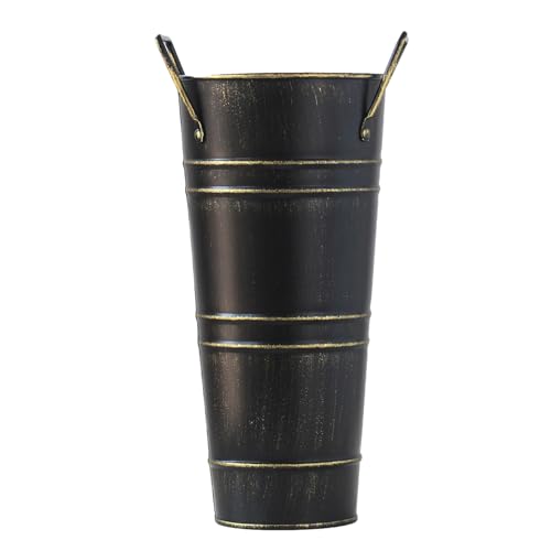 NOTRAK Round Umbrella Bucket, Metal Umbrella Holder with Handles, Umbrella Holder for Umbrellas, Canes and Walking Sticks, Vintage Umbrella Stand for Decorations