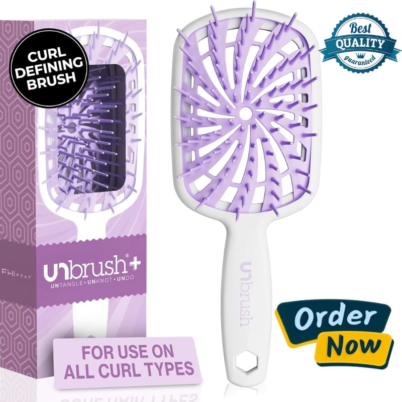 FHI Heat UNbrush Plus — Curly Hair Brush for Gentle & Effective Detangling on Wet or Dry Fragile Hair Types — Detangler Brush w/ 84 UltraFlex Bristles, Ultra-light, Vented, Anti Static Hairbrush
