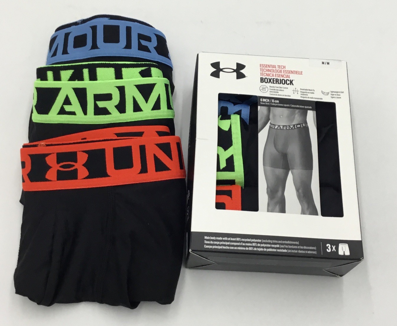 Under Armour Men's Multi-Pack Performance Tech Mesh Boxerjock Brief, 6" Inseam, All-Day Comfort Boxer Shorts, Black Solid-Core 3 Pack, M (Pack of 3)