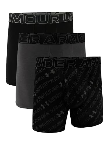 Under Armour Men's 3-Pack Performance Cotton Boxer Brief, 6" Inseam – Breathable, Moisture Wicking, Soft Touch, All-Day Comfort - Print/Solid