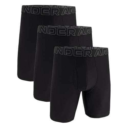 Under Armour Men's 3-Pack Performance Cotton Boxer Brief, 6" Inseam – Breathable, Moisture Wicking, Soft Touch, All-Day Comfort - Black/Starlight
