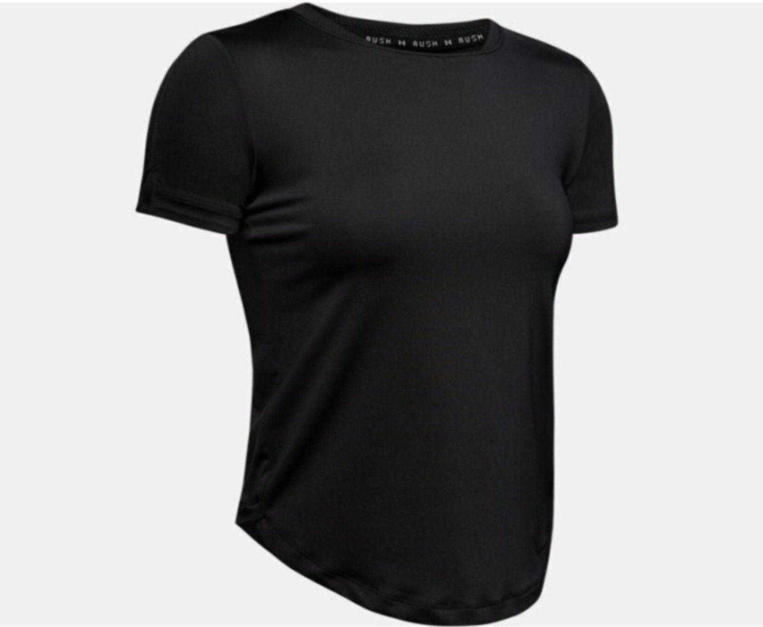 Under Armour Rush Breathable Ladies T Shirt with Rush Technology, Short Sleeve Running Apparel with Tight Fit, Women Black, Black / / Black (001), SM