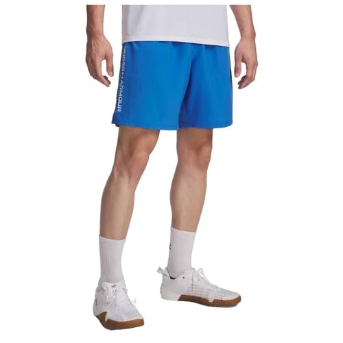 Under Armour Men's Tech Woven Wordmark Short, Lightweight and Breathable Men's Gym Gear, Comfortable Sports Shorts for Training and Athletics,Blue Atlantis / / White,SM