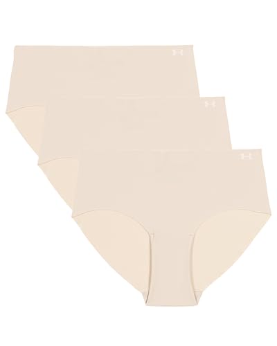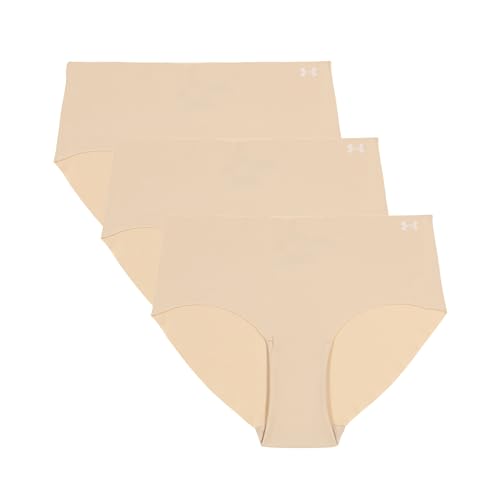Under Armour Women's 3-Pack Pure Stretch No Show Hipster Underwear – Seamless Invisible Fit, No VPL, Ultra-Soft, All-Day Comfort - Beige