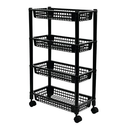 Coopers of Stortford - 4 Tier Trolley on Wheels - Under Counter Storage Organiser with Ventilated Trays Lightweight Recycled Plastic for Fruit Veg and Supplies (Black)