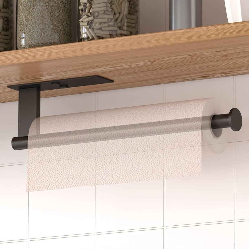 Stainless Steel Paper Towel Holder with Matte Black Finish, Space-saving Under Counter Mount for a Tidy and Functional Kitchen
