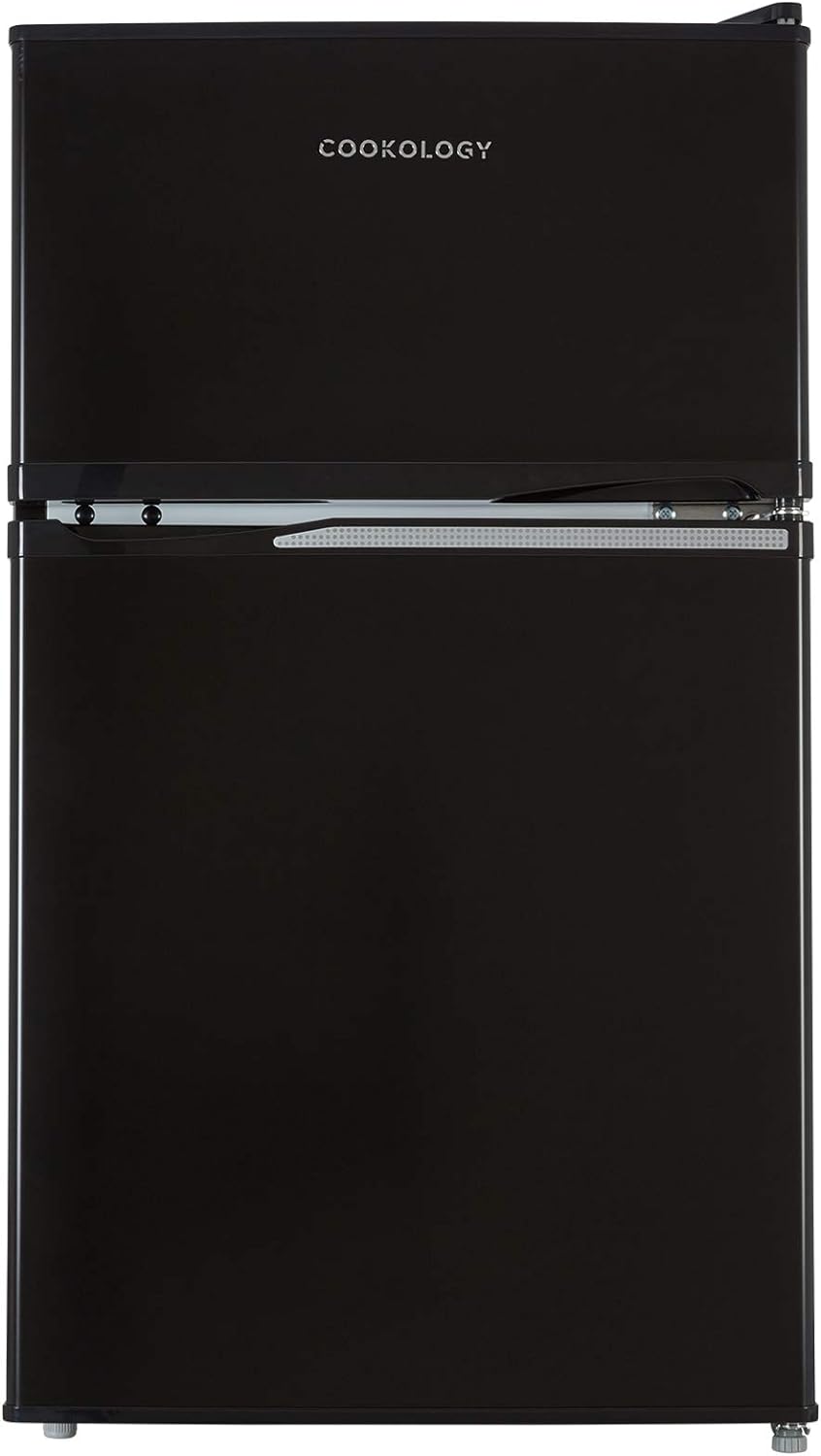 COMFEE' RCT87BL2(E) Under Counter Fridge Freezer, 87L Double Door Small Fridge Freezer with Light, Removable Shelves, Adjustable Thermostats, Reversible Doors Black