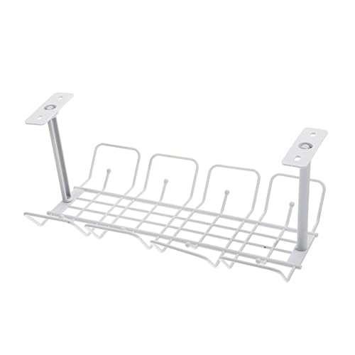 ZUNOXAZ Under Desk Cable Management Basket Cord Organizer Rack for Home Office No-drill Installation Cable Storage Tray for Power Strips and Wires Strong Construction White