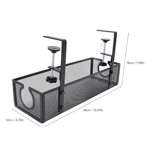 Sosoport under Desk Cable Management Tray Adjustable Clamp Black Small Size Mesh Desk Organizer Clamp for Office and Home Cord Storage Organizer Box
