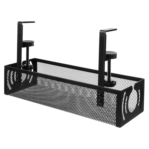 Fdit Fdit Under Desk Cable Management Tray, No Drill Metal Cable Organizer with Clamp, Wire Management Tray with Cable Ties for Home Office Desk (Black)