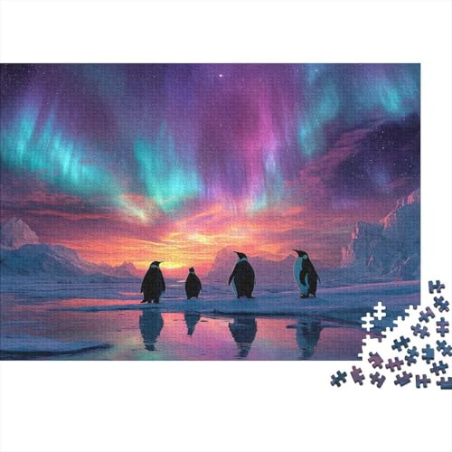 Penguins Under Aurora—Arctic Night Landscape 1000 Piece Jigsaw Puzzles for Adults in Vibrant Colours Colourful Jigsaws As An Aesthetic Jigsaw Puzzle for Home Decor Puzzle 38x26cm/1000pcs