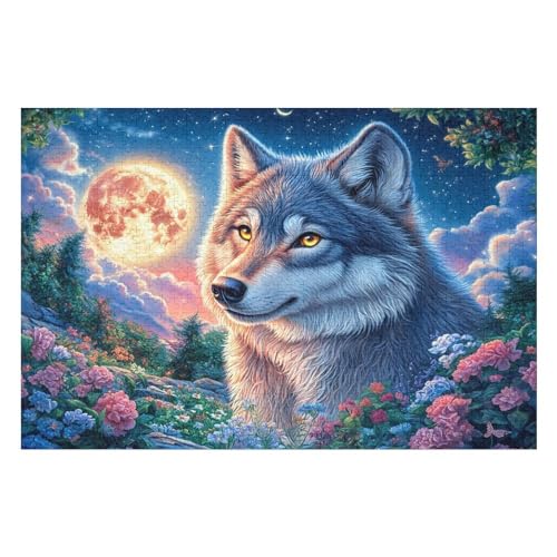 Wolf Under Giant Moon in Floral Starry Night 1000 Piece Pack DIY Jigsaw Puzzle Collectors Cognitive Development Educational Decorative Puzzle Gifts for Adults Premium Cardboard 1000 PCS