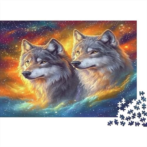 Two Wolves in Space 1000 Piece Puzzle Recycled Cardboard Jigsaw for Couples Wolves Under Starry Sky Relaxing Cognitive Development Family Game Night 70x50cm/1000pcs