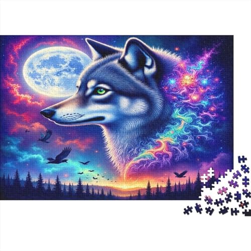 Wolf Family Night 1000pieces Jigsaw Puzzle Cardboard Stress Relief for Adults & Seniors Fox in A Flower Field Under A Fantasy Starry Sky Challenging Brainteaser Home Decoration Eco-friendly Christmas
