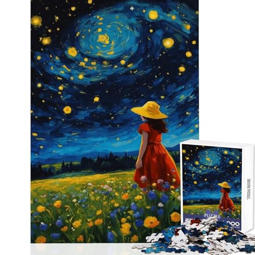 Jigsaw Puzzles 1000 Piece for Teenagers Girl in Field Under Starry Night Educational Toy Great Gift for Games Practical Game Educational Challenge Size 38x26cm