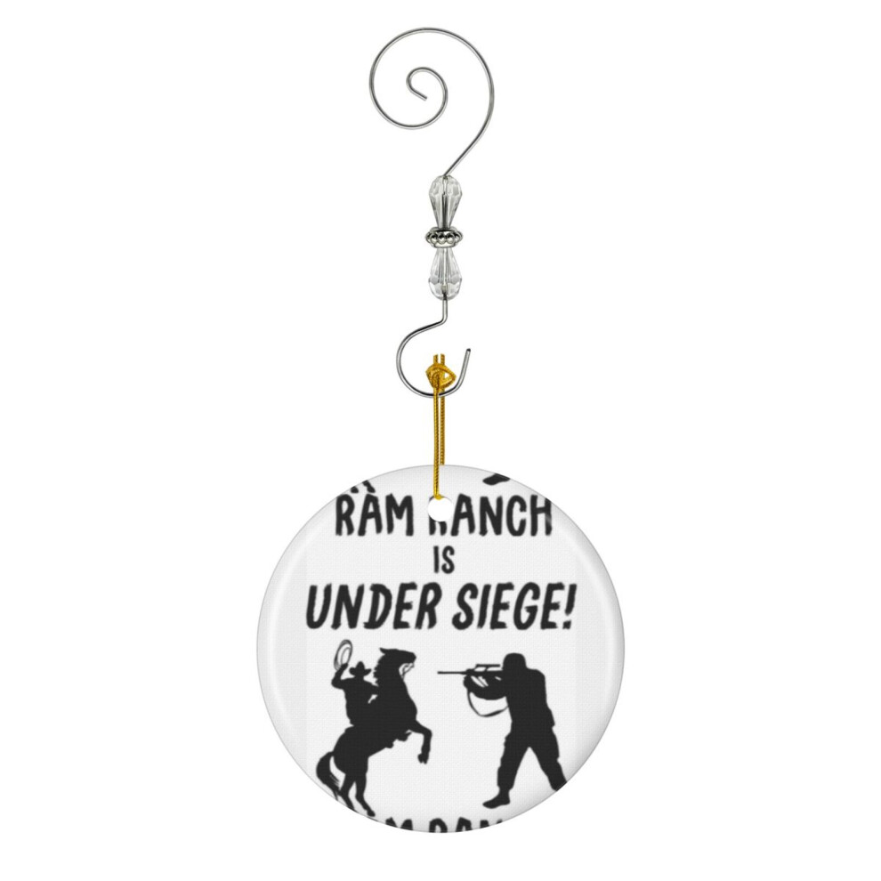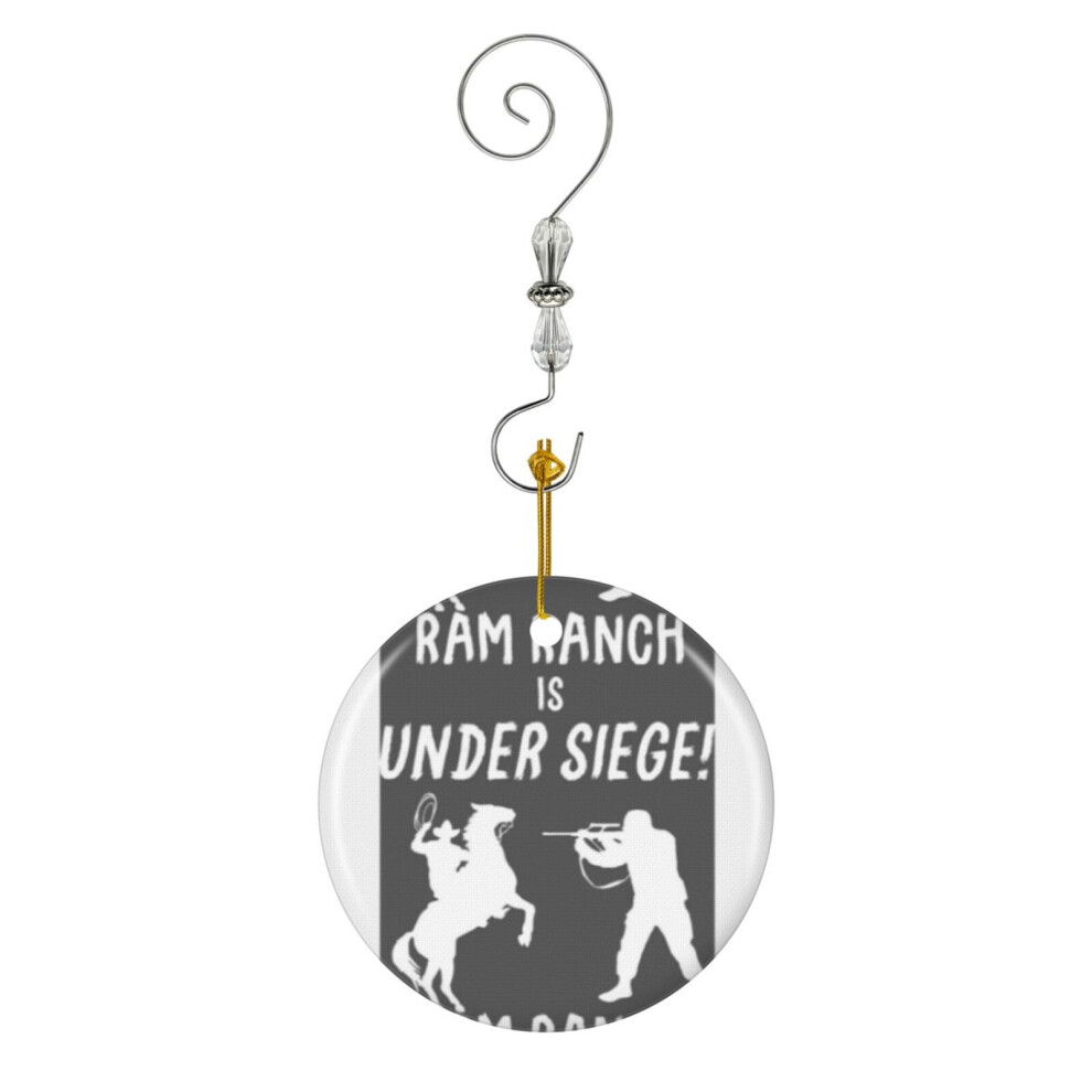 (Ram Ranch Is Under Siege! - Black-4760) Christmas Ornaments Ceramic Charm with Hook Crystal Handmade Xmas Tree Decorations Keepsake Stocking Stuffer