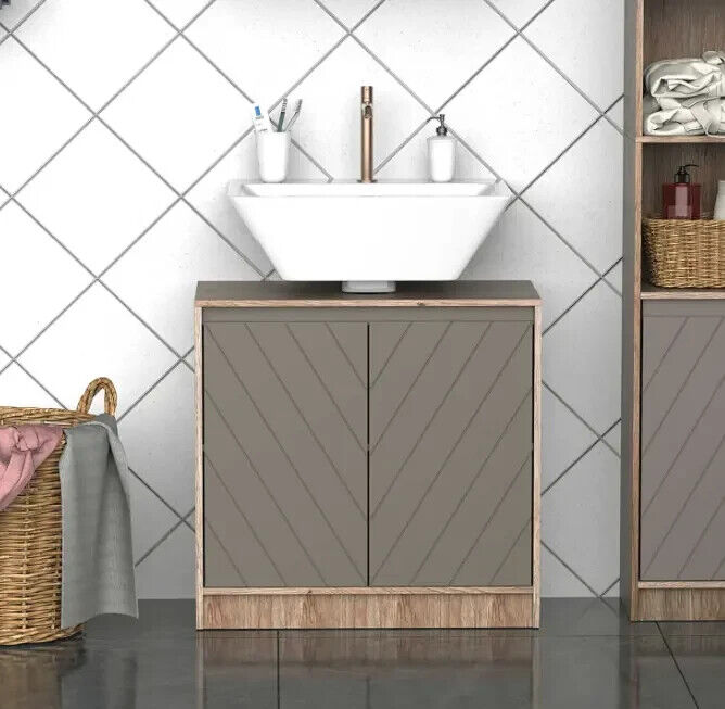 Bathroom Vanity Unit Rustic Storage Cupboard Modern Grey Door Under Sink Cabinet