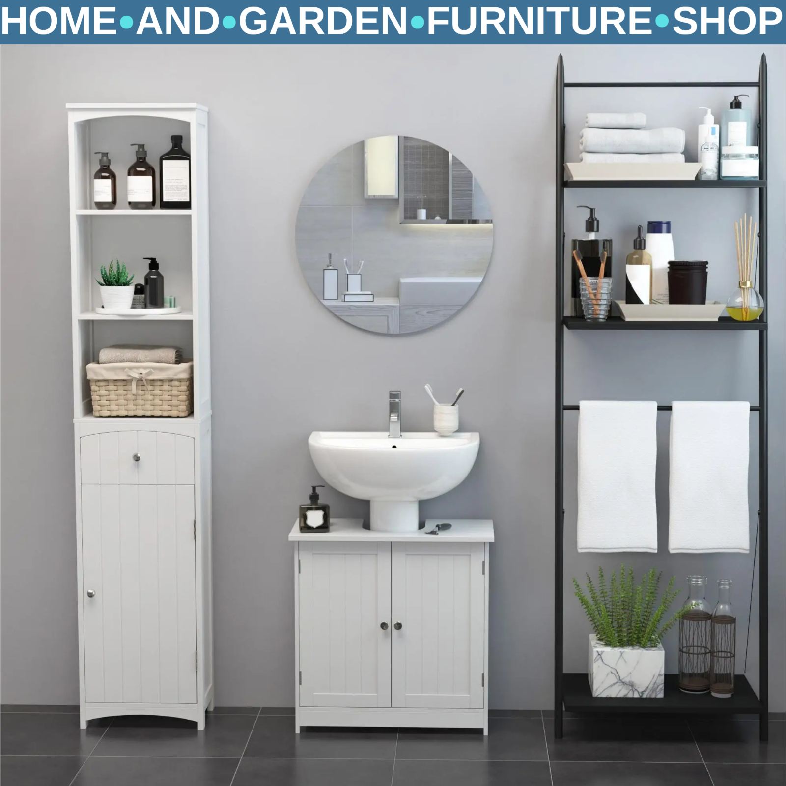 Under Sink Cabinet Bathroom Vanity Unit White Storage Shelf Modern Cupboard Unit