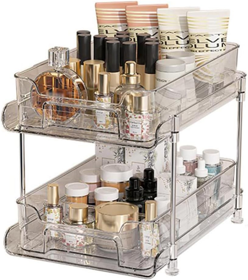 Hapihom 2 Tier Bathroom Counter Organizer,Pull Out Clear Under Sink Organizers