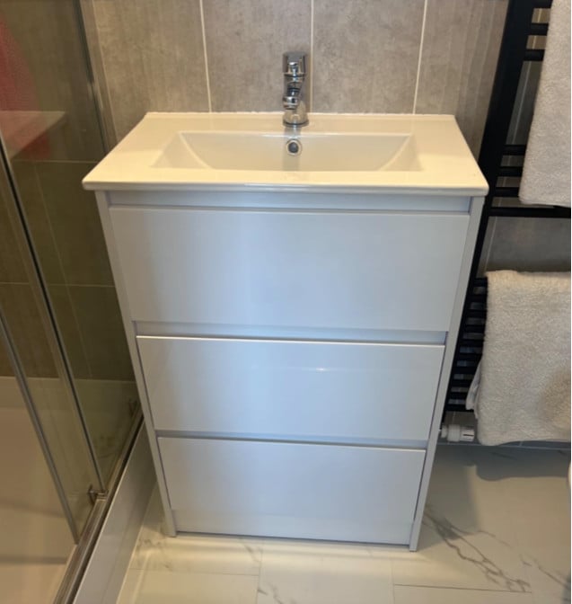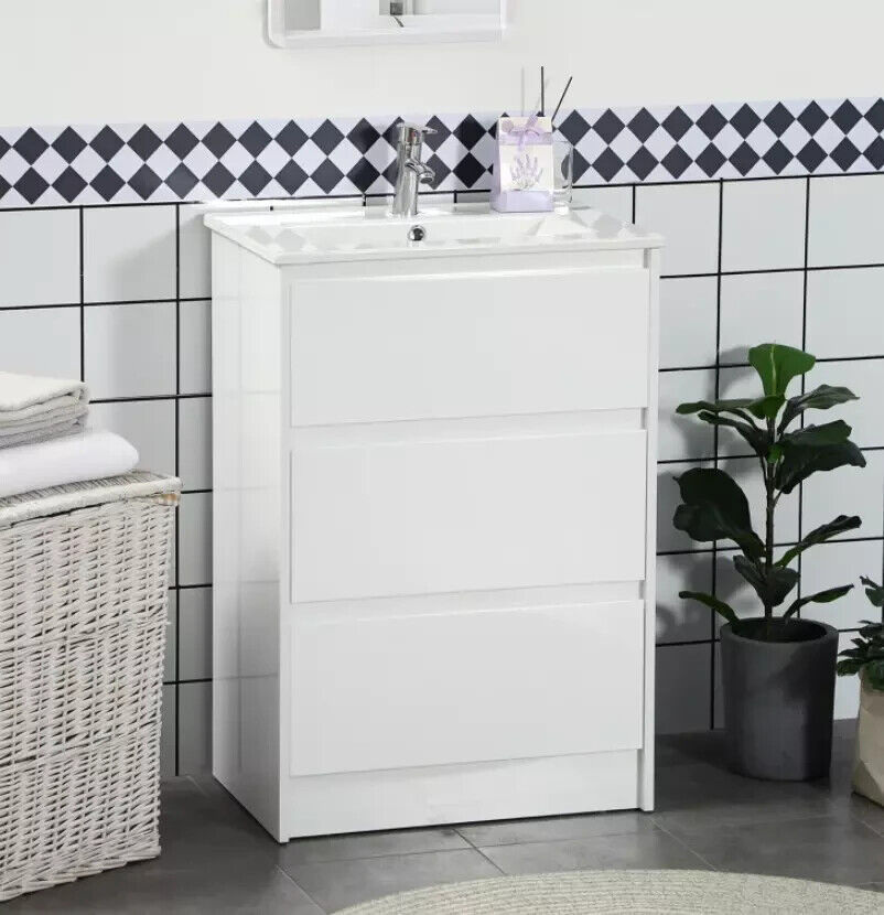 Bathroom Vanity Unit Modern White High Gloss 2 Drawers Under Sink Basin Cabinet