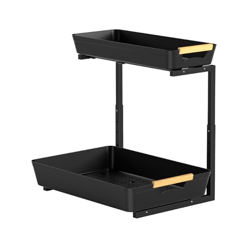 Under Sink Organizer, 2-Tier Sliding Cabinet Storage Rack, Black Metal Pull Out Shelves for Cleaning Supplies