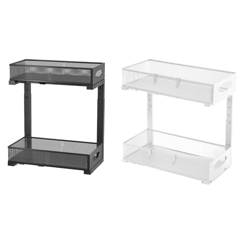 Under Sink Organizer, 2-Tier Storage Rack, 19.69x15.67x8.07inches, Height Adjustable Shelf, Space-Saving Design, Household Organizer, for Kitchen, Pantry, Closet, Bathroom, Laundry Room, Black/White