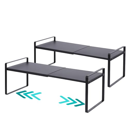 LJHFUQHUHU 2-Pack Expandable Shelf Organizer for Kitchen Countertop, Kitchen Organizers and Storage,Under Sink Expandable Shelf Organizer(Black, 8.2’’D * 12.2-21.6’’W * 7.7’’H)