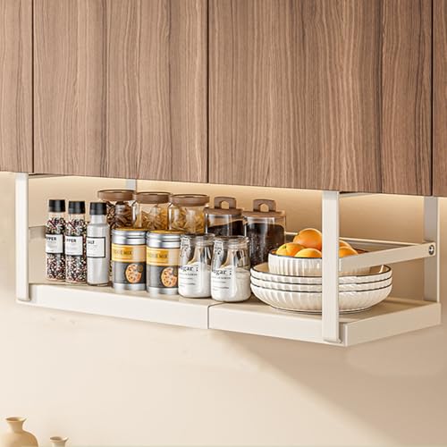 Under Cabinet Shelf Storage Basket, Adjustable Hanging Under Cabinet Shelf, Pull Out Design Retractable for Shoe Shelf Pantry Kitchen Desk Counter Bookshelf Organization