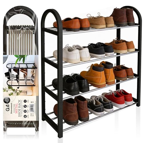 G4GADGET 4-Tier Metal Shoe Rack, Small Shoe Storage Shelf for Bedroom & Hallway | Narrow Shoe Organiser Stand for Space-Saving Shoe Racks | Storage for Entryway, Closet & Under-Stairs