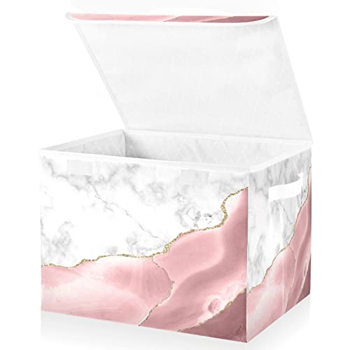 Mnsruu Storage Boxes with Lids, Rose Gold Marble Gilt Large Storage Basket Organizer Shelves Cube Bin Toy Clothes Underbed