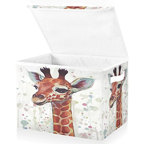 Mnsruu Storage Boxes with Lids, Giraffe Watercolor Large Storage Basket Organizer Shelves Cube Bin Toy Clothes Underbed
