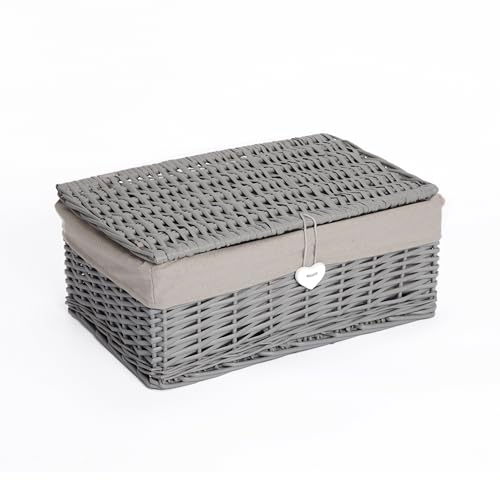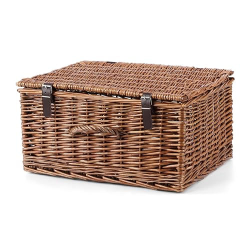 Wickerfield Wicker Basket with Lid, Gift Hamper Basket for Christmas, Woven Bathroom Storage Box, Under-bed Storage (Grey, Large)