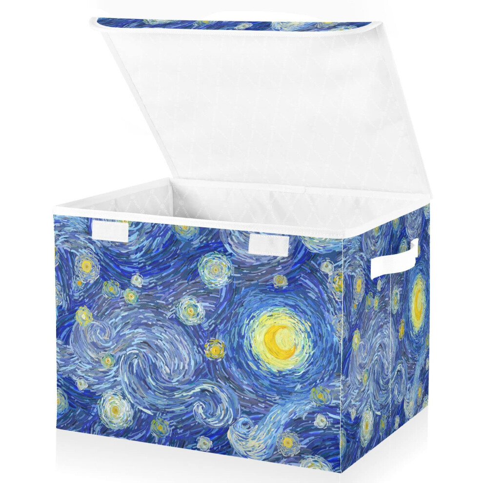 Mnsruu Storage Boxes with Lids, Van Gogh Starry Night Art Oil Painting Large Storage Basket Organizer Shelves Cube Bin Toy Clothes Underbed
