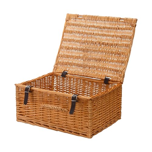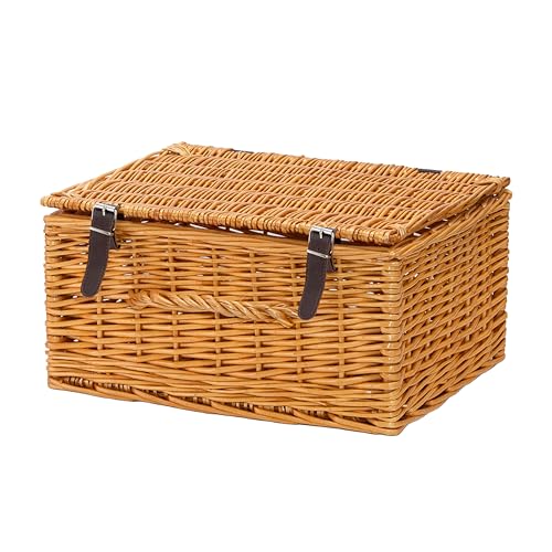 Natural Dyed Wicker Hampers with Lid Perfect for Gift Hampers Shelf Basket Wardrobe Organizor Underbed Storage Retail Display Basket (Honey, Large)