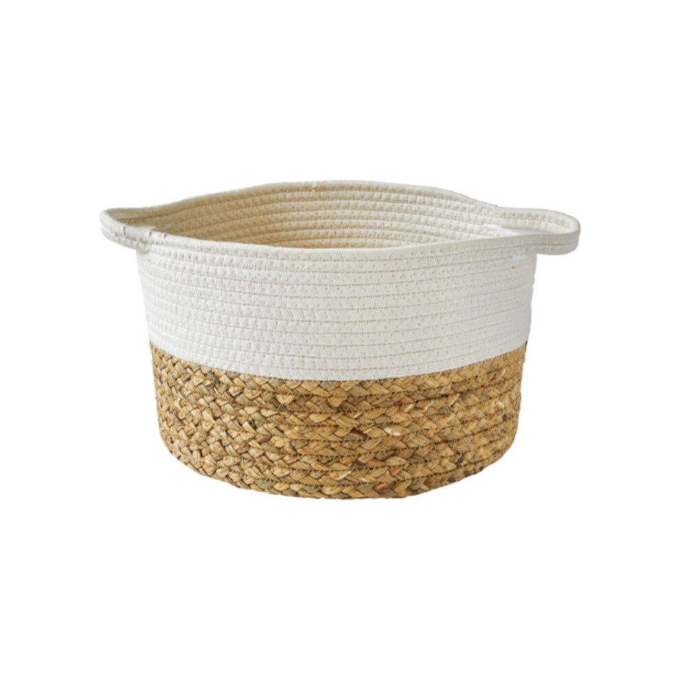 Straw Cotton Woven Storage Basket with Rope Design â Versatile Home Organizer for Living Room, Bedroom, Bathroom, Underbed â Compatible with